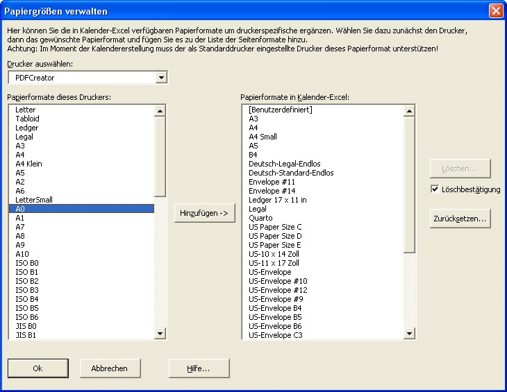 - Alle in Excel definierten Papierformate sind nun wählbar.
